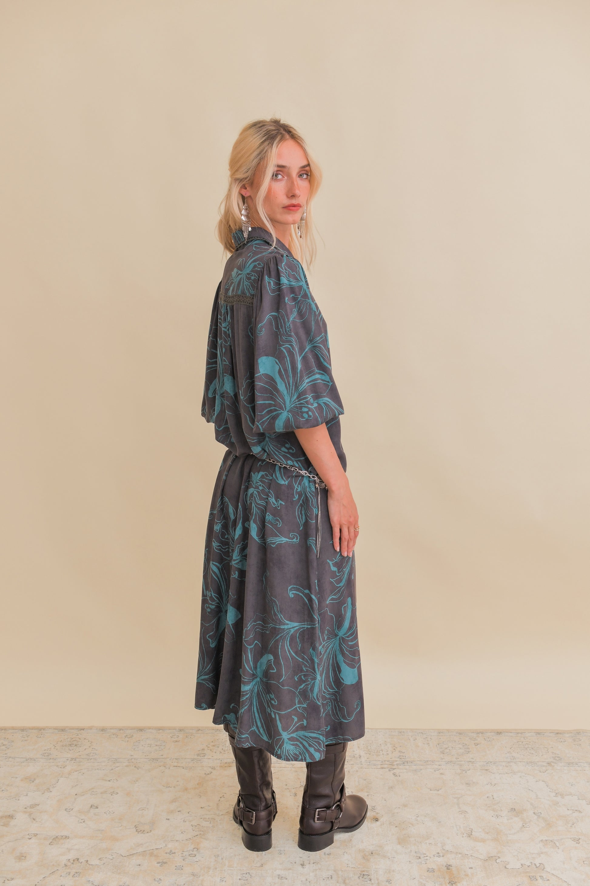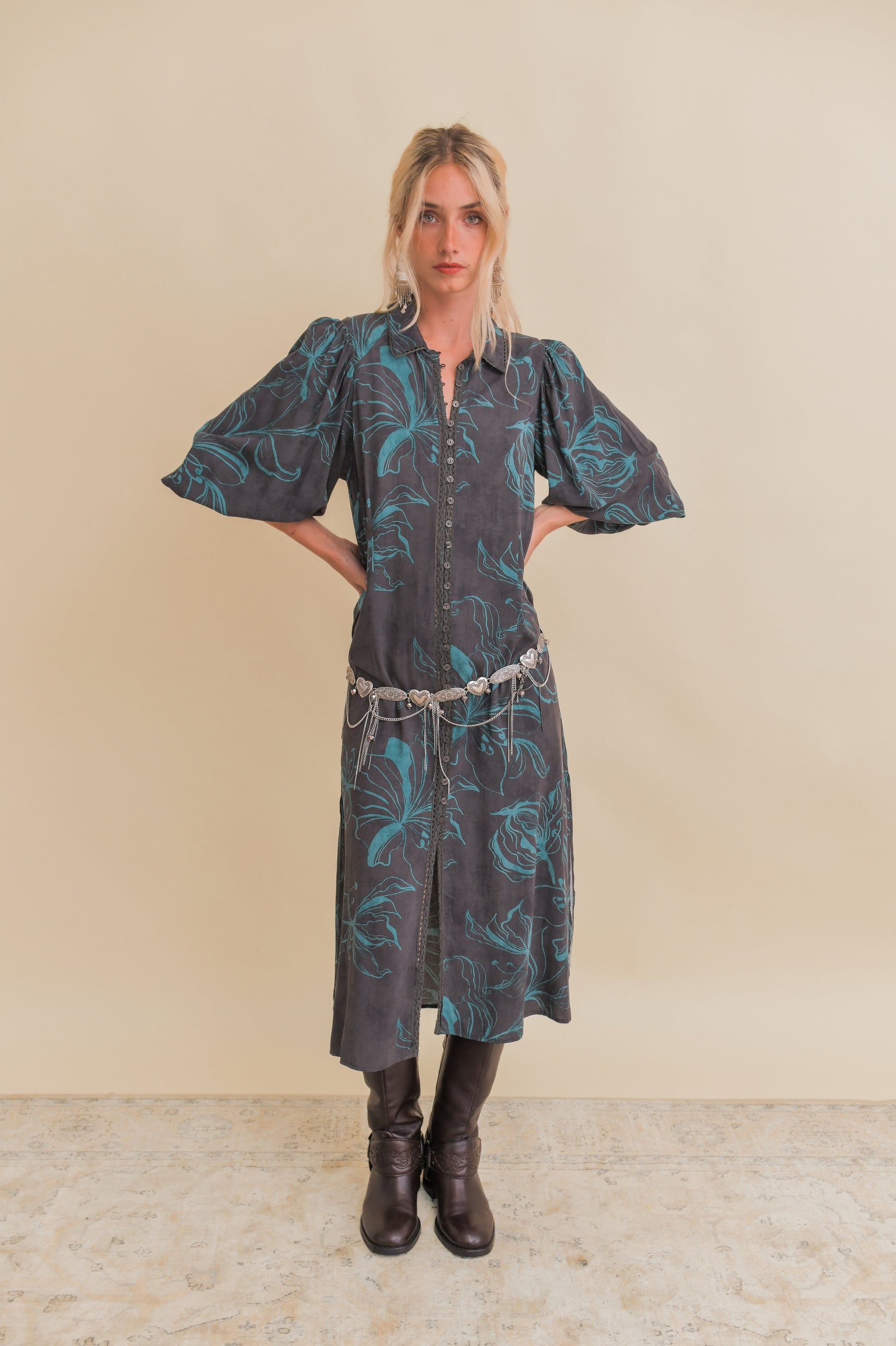 MIDNIGHT LILLY PRINT WHITNEY MIDI DRESS