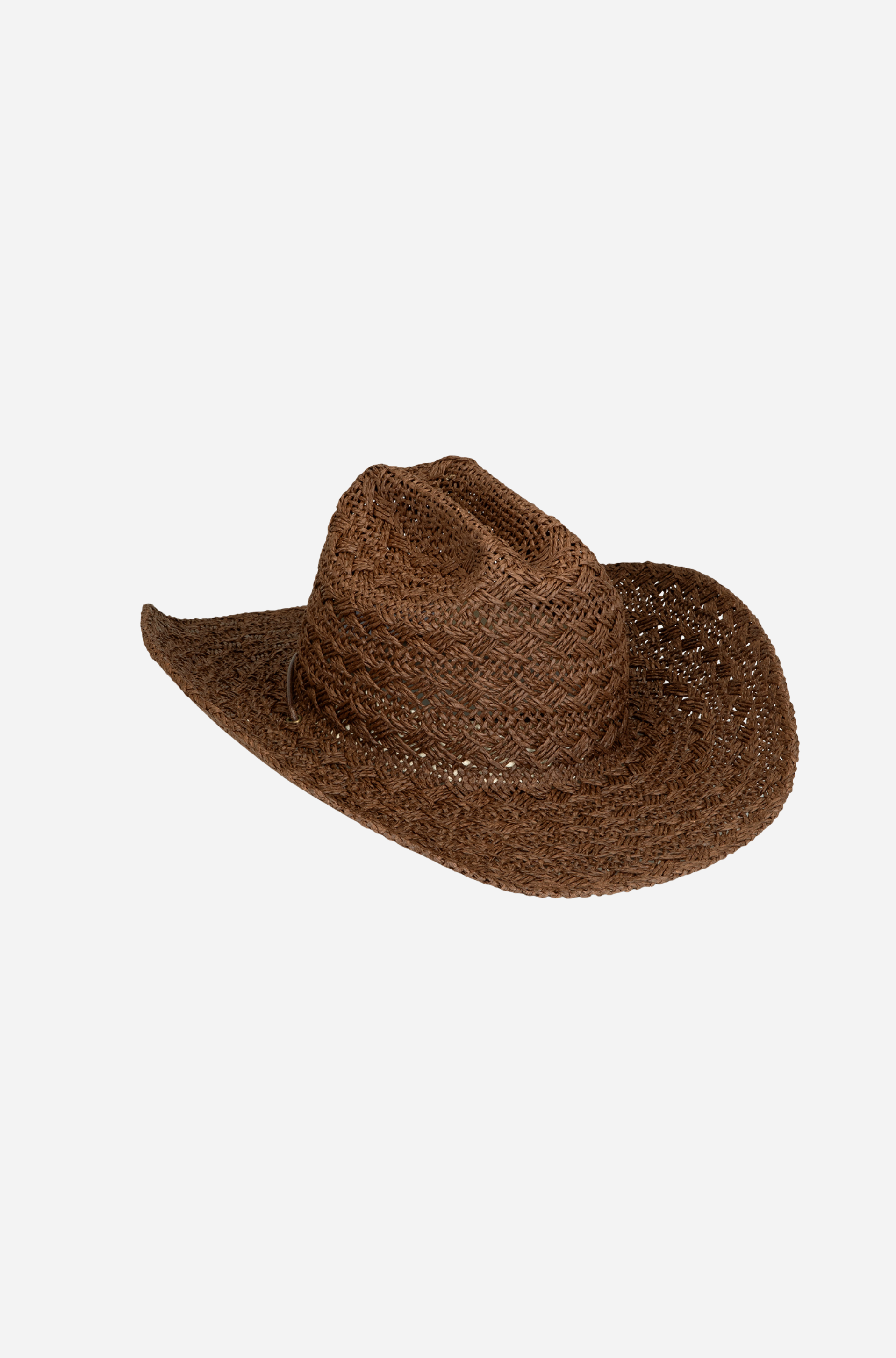 Handwoven in a rich carob coloured paper straw, this cattleman crown cowboy hat radiates festival vibes and exudes effortless chic. From roads less travelled to those well-worn, this hat will stop everyone in their tracks.